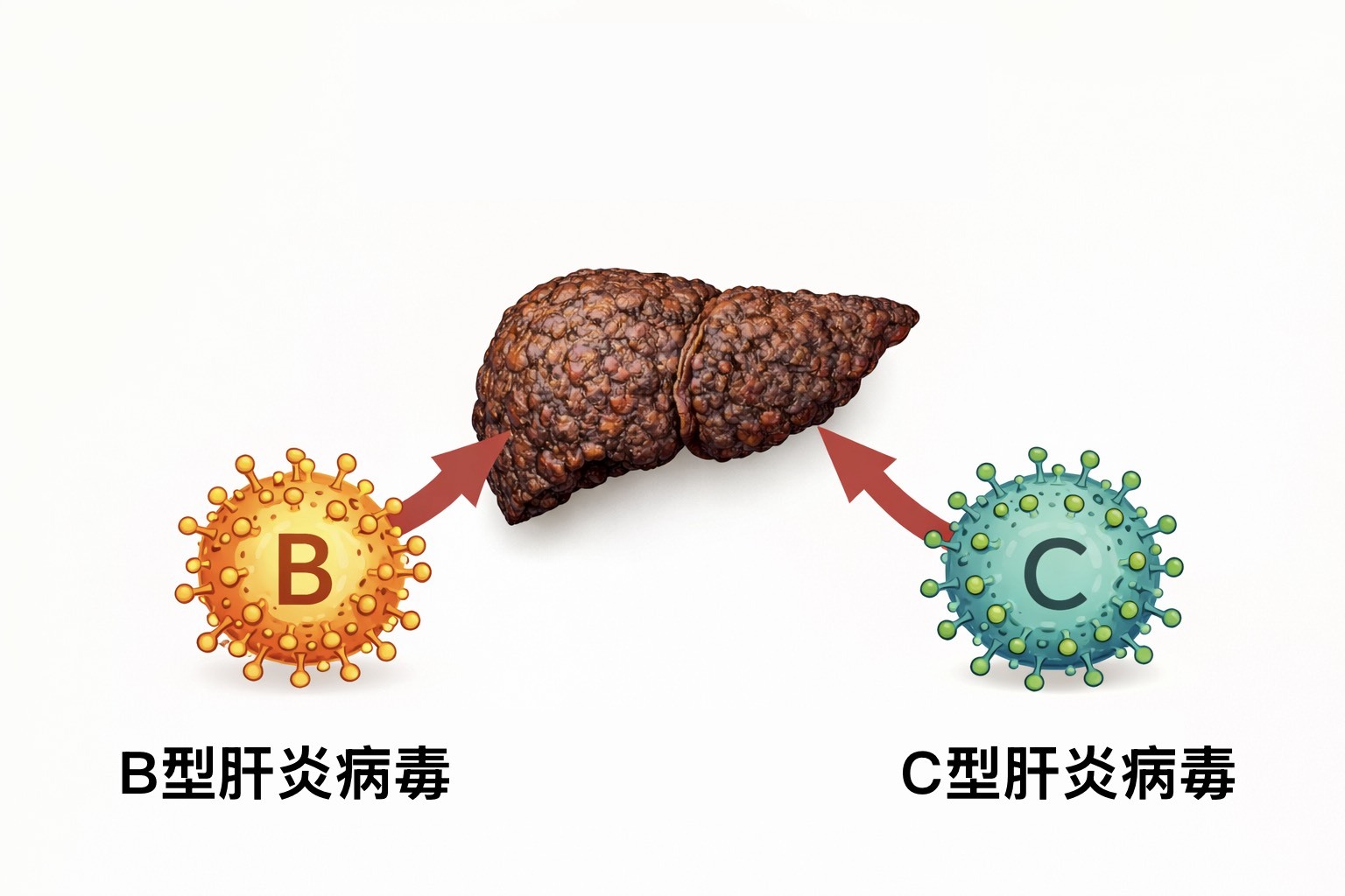 - 肝硬化可能為病毒、酒精、藥物、自體免疫性肝炎、脂肪肝等因素所導致。