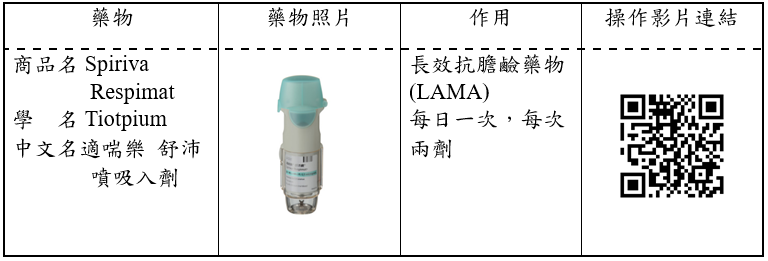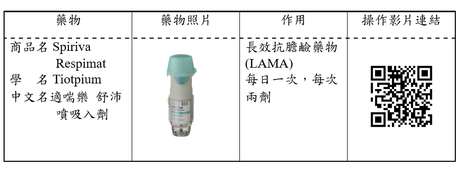 長效抗膽鹼藥物(LAMA) 每日一次,每次兩劑 |