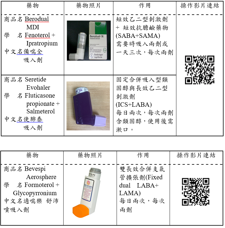 | 藥物 | 藥物照片 | 作用 | 操作影片連結 |